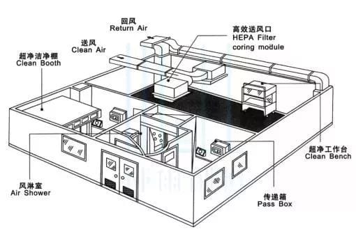 The different designs of air supply and return air systems in clean workshops are the decisive factors for determining the different cleanliness levels of clean workshops.
