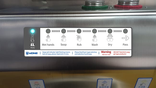 - The WONE’s hand washing, drying, and disinfecting machine is highly integrated with hand washing + cleaning + drying + disinfection functions. It occupies a small area and is suitable for use in small spaces.