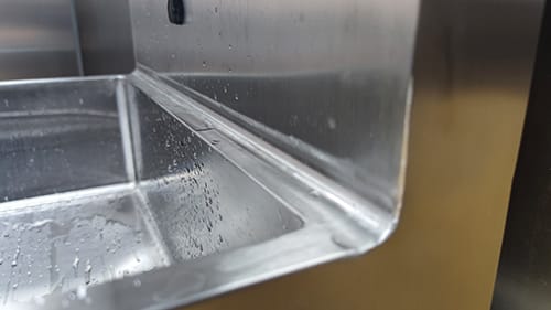 - Although some companies are equipped with stainless steel hand-washing sinks, the stainless steel grade is not high enough and may still be corroded. Moreover, the stainless steel hand-washing sinks have design flaws such as right angles, which can easily cause dirt to accumulate, eventually leading to the outage of hand-washing facilities.