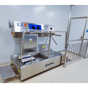 The hygienic design of the WONE hygiene station for food factories is reflected in the disinfection pool water level adjustment, the inclined surface to prevent standing water and splashing water, and the inclined design for easy drain.