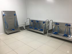 – Boot washers are commonly found at the exits of employee locker rooms, changing areas, and other non-production spaces to prevent the transfer of contaminants from these zones into the manufacturing environments.