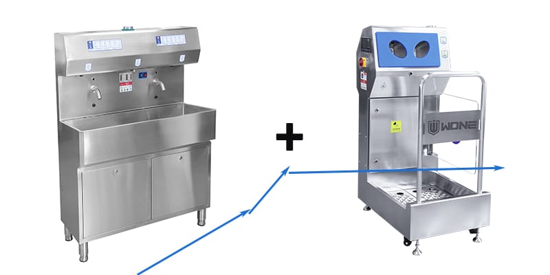Applicable scenarios: Wash, disinfect, and dry hands before entering work, mandatory brushing of work shoe soles, and mandatory disinfection of hands and work shoe soles.