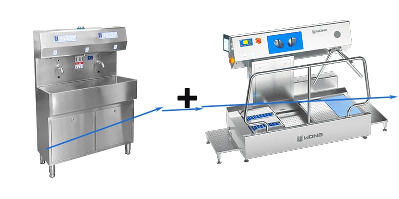 Traditional personal cleaning and disinfection is to use hand washing equipment and self-built disinfection pools to clean and disinfect personnel’s hands and feet.