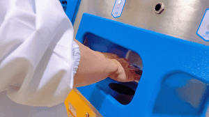 After changing into clean clothing, employees enter the decontamination room for personnel cleaning and disinfection. This step is critical to ensure that all potential contaminants are eliminated before entering the workshop.
