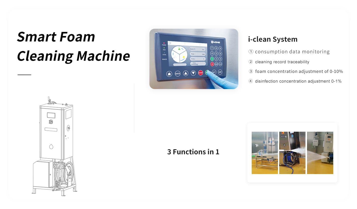 – Foam cleaning machines are used to clean and disinfect equipment involved in dairy processing, such as milk tanks, pasteurizers, separators, homogenizers, filling machines, etc. The foam helps remove milk solids, fat, and bacteria that accumulate on the surface of the device.