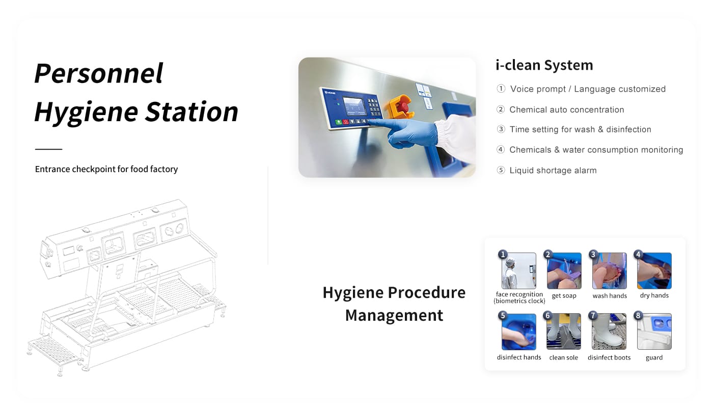 Moreover, as a trusted hygiene station manufacturer, the PBW‑25 integrates seamlessly with turnstile hygiene stations, enabling controlled access only after full hygiene compliance. It fully supports HACCP, GMP, IFS, and BRC standards, providing both safety and efficiency. For more information on hygiene compliance standards, see HACCP guidelines and Codex Alimentarius